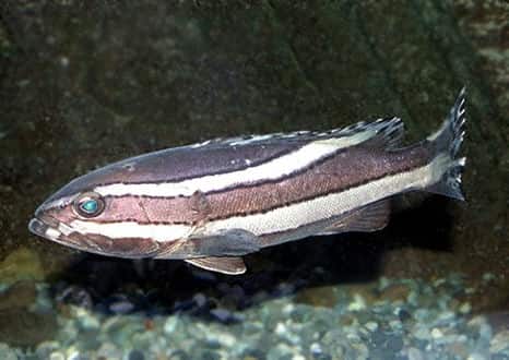 | オオスジハタは東シナ海から南シナ海を経てアラフラ海に至る西太平洋に分布する大型のハタ類で、国内では南日本に分布している。 インド洋でもペルシャ湾や紅海を含む全域に分布していて、大きいものでは1.3mを超え、体重は58kg程にもなる。 体は長い楕円形で側扁し、眼隔域は隆起している。 口は大きく、上顎は眼の後縁を超えている。 背びれは胸びれの基底よりも少し前からはじまり、尾びれの後縁は丸い。 体色は灰褐色や褐色で、暗褐色に縁取られた2本の縦縞が見られ、この縞は吻端から伸びている。 また、尾びれや背びれには暗褐色の斑があるが、成魚では体側の縦縞が消失し、暗褐色の点線になる。 やや深場の岩礁域や砂泥底などに生息し、水深20~230m程のところで見られる。 小魚や甲殻類、軟体動物などを食べるが、小さいものは砂泥底などに多く、大きいものは岩場などに多く見られる。 オオスジハタは釣りや底引き網などで獲られ、ほかのハタ類のように食用に利用されている。 漁獲量が少なく、広く流通することはないが、白身の魚で刺身や焼き物、鍋物などに利用され、美味しいものとされている。 |
