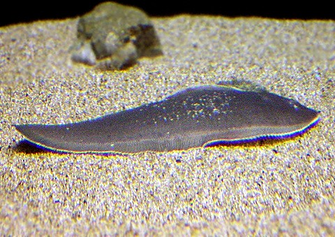 | コウライアカシタビラメは主に東シナ海から南シナ海を経てアラフラ海やミクロネシアなどの西太平洋に分布していて、インドネシアのインド洋側などでも見られる。 国内では静岡辺りよりも南の太平洋側に分布しているが、本州の日本海側でも見られる。 体は長い楕円形で、吻の先は後下方に曲がっていて、口の後端は下目の後縁よりも後方にある。 背びれは胸びれの後端辺りからはじまっていて、尾びれは背びれとしりびれに繋がっている。 また、尾びれの後端はとがっている。 有眼側は淡い褐色をしていて、鱗は櫛鱗をしている。 無眼側は櫛鱗か円鱗で、側線は有眼側に3本見られる。 沿岸域ややや沖合いの砂泥底に生息し、甲殻類やゴカイ類、小魚などのほか動物プランクトンなどを食べる。 水深20~85m程の所に見られ、産卵は春季の水温10℃前後の時に行われ、弱い付着卵を砂底に産み付ける。 コウライアカシタビラメは底引き網や刺し網などで獲られ、クロウシノシタなどと同様、食用として流通している。 白身で美味しいものとされ、煮つけなどに利用されている。 ウシノシタ科の魚類へ / このページの先頭へ |