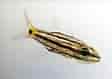 | ヤライイシモチは西太平洋や中部太平洋、紅海を含むインド洋などに広く分布しているテンジクダイの仲間で、国内では和歌山辺りから南の南日本で見られる。 体は細長くて側扁し、体高は低い。 眼は大きく、前鰓蓋縁は鋸歯状で、尾びれは湾入している。 体色は淡褐色で白っぽく、体側には5本の黒っぽい縦縞があり、その内の1本は眼を通っている。 尾柄にはひとつの黒い斑が見られ、黄色く縁取られている。 一見するとオオスジイシモチやコスジイシモチなどに似ているが、ヤライイシモチの尾柄にある黒い斑には黄色の縁取りがあり、体高も低い。 沿岸の浅い岩礁域やサンゴ礁域、内湾などに生息し、甲殻類や小さな魚、多毛類などを食べる。 小さな群れで生活しているが、昼間は岩陰などにで休んでいて、夕方や夜になると採餌を行う。 水深40m辺りまで見られ、10cm程の小型種だが、大きいものでは13cm程に成長する。 また、繁殖はペアで行われ、コスジイシモチなどのように、卵は口内で守られる。 ヤライイシモチは防波堤からの釣りなどでも上がるが、体が小さいので、ふつうは食用に利用されることはないが、観賞用に利用されることがある。 ところで、「ヤライ(矢来)」とは、竹などで粗く組んだ柵のことで、体側の縦縞をこれに見立てて名前が付けられている。 |